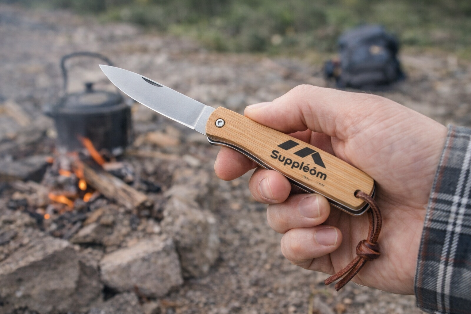 Couteau pliant élégant et fonctionnel, doté d’une lame en acier inoxydable 2CR13 et d’un manche en bambou pour une prise en main confortable et naturelle. Équipé d’un cordon en PU, il se transporte facilement et reste toujours à portée de main. Compact et léger, il convient parfaitement aux activités du quotidien, aux sorties en plein air ou comme accessoire pratique à offrir.