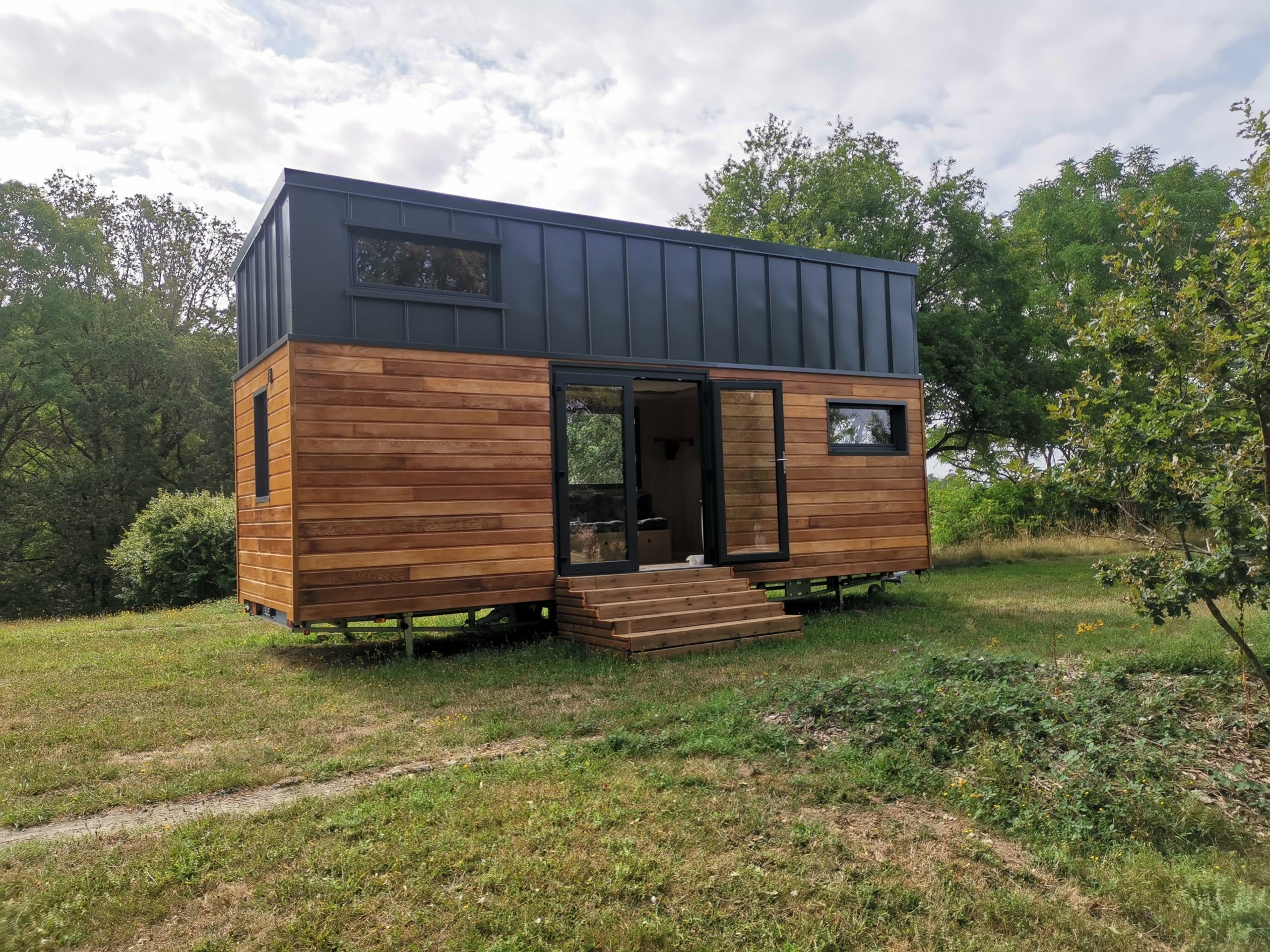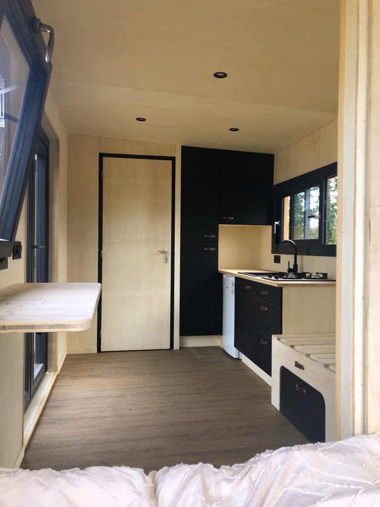 Vous recevez une tiny montée, sans aménagement, sur remorque, avec une structure et une enveloppe parfaitement réalisée.